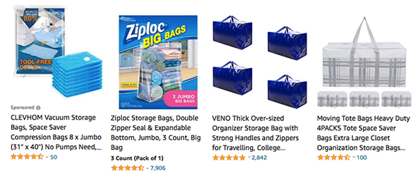 Pack like-things together, and use clear bins or bags. Color bins are fun, but make it impossible to look through things at a glance. While clear bins make it easier to see what’s inside, a general label holder on the outside helps too for when you have things to store during the year. “There’s a bin for that!” Some bin organizing label ideas: “Gardening,” “Toys,” “Holiday,” “Tools,” “Yard Sale,” “Auto,” “Extension Cords/Power Strips,” “Sports,” etc. Packing soft items like blankets in clear bags with handles are great for ease-of-use too.