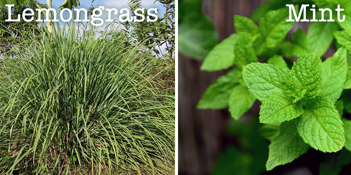 Lemongrass, lemon bee balm, the grass version of Citronella… basically most lemon scented plants in the garden seem to be listed as a bug deterrent. Mint is another scented plant that apparently mosquitos, flies, spiders, ants, and even some snakes dislike.